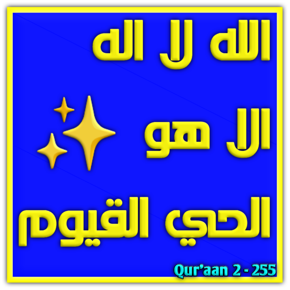 Bring spiritual elegance to your digital or physical space with this beautiful Arabic artwork featuring the powerful verse "اللّهُ لاَ إِلَـٰهَ إِلاَّ هُوَ الْحَيُّ الْقَيُّومُ" from the Holy Qur'an (2:255), also known as Ayat al-Kursi. This high-quality digital poster is designed in a striking blue and yellow color scheme with modern 3D text and emoji-style sparkle effects, perfect for printing, sharing on social media, or using as a digital wallpaper.