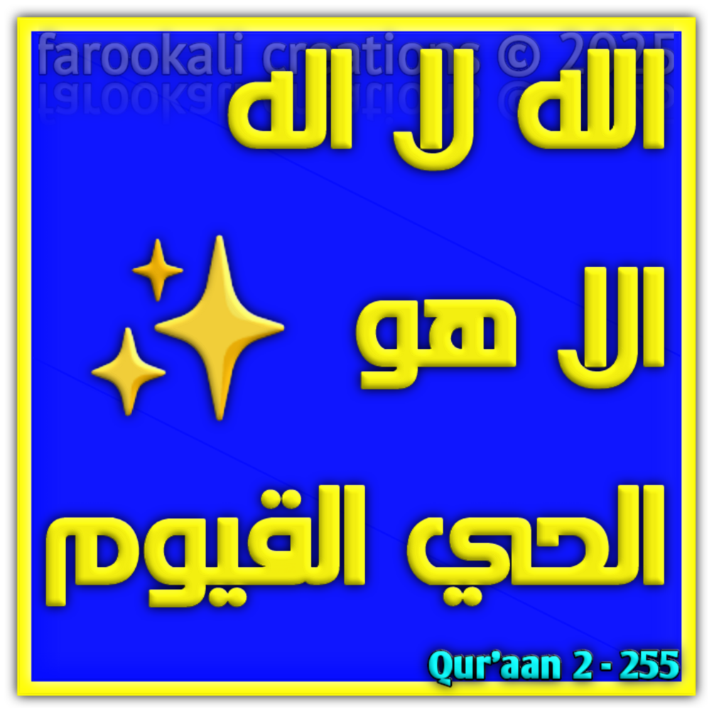Bring spiritual elegance to your digital or physical space with this beautiful Arabic artwork featuring the powerful verse "اللّهُ لاَ إِلَـٰهَ إِلاَّ هُوَ الْحَيُّ الْقَيُّومُ" from the Holy Qur'an (2:255), also known as Ayat al-Kursi. This high-quality digital poster is designed in a striking blue and yellow color scheme with modern 3D text and emoji-style sparkle effects, perfect for printing, sharing on social media, or using as a digital wallpaper.